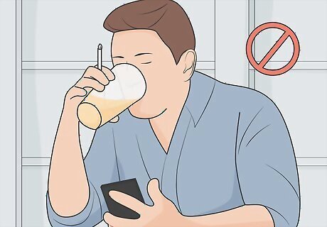 Avoid cigarettes and alcohol. Think about how often you smoke and drink within a week. Try to cut out as much nicotine from your diet as you can, including cigarettes and chewing tobacco. Additionally, drink alcohol as a weekly treat instead of as a nightly beverage. Nicotine and alcohol can both make you more anxious, which leads to higher stress levels. Quitlines and text message programs can help you quit smoking. Additionally, throw out any items that may tempt you to smoke, like lighters or matchbooks.