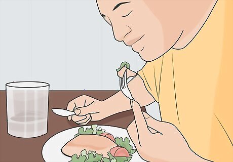 Prioritize protein in your diet over sugar to keep your body at its best. Choose foods in your diet that are high in protein, like lean meats and nuts. Try to cut back on the amount of candy, sugary drinks, and other sweet treats that you enjoy throughout the day. If you eat a lot of junk food, your body won’t be able to handle stress as well. For instance, eat a protein-rich granola bar instead of a candy bar if you’re hungry at work.
