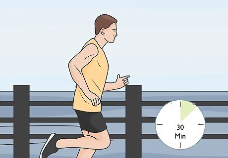 Exercise for 30 minutes after work to help get rid of some tension. Run, jog, bike, swim, or do another physical activity for at least a half hour, which can help lower your stress levels and improve your mood. If you have a busy schedule, try dividing your exercise into 10- or 15-minute chunks that you can sprinkle throughout the day. For instance, you can go for a 30-minute walk after work, or you can go for a 10-minute power walk 3 times during the day.