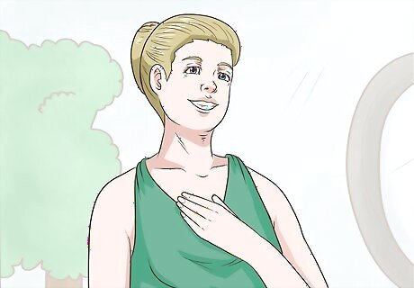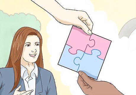 Use a firm handshake and eye contact to convey confidence. Body language tells people a lot about how you're feeling, and you can use this to your advantage. When you're meeting with a client or potential employer, make eye contact as you approach them. Then, give a firm handshake. While you're talking, continue to make eye contact. This will make the person perceive you as confident and self-assured, even if you're actually nervous. To get better at making eye contact, ask a friend to make sustained eye contact with you for 5-10 minutes. Repeat this exercise until you feel more comfortable staring into someone's eyes.