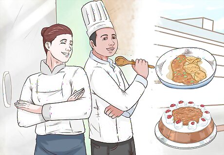Collaborate with other people to show off your skills. Partner with other professionals to produce products that show off all of your work. You might do this for free or for a share of your partner’s profits. Offer to help someone in your field complete a big project, or work with people in related fields to share your skills. For instance, if you’re an artist, you might collaborate with 3 other artists to create a community mural. If you’re a music promoter, you could partner with local bands and vendors to put on a small festival.