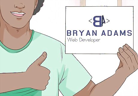 Design a logo to represent your personal brand. First, choose a color scheme for your logo. Then, draw an image or use a photograph of your work. Consider adding your name or business name to the design. Finally, test your logo by showing it to people who are in your target audience so you can get their feedback. You may not need a logo if you aren't running your own business, so it's okay to skip this step if you don't think you'll use a logo. Make sure your image is scalable, which means it can be sized up and down to fit on your promotional materials. You can use programs like Adobe Illustrator or Inkscape to create a digital file for your logo.Variation: Hire a graphic design artist to create a personal logo for you. You can find artists on freelancing websites or by searching online for an artist in your area.