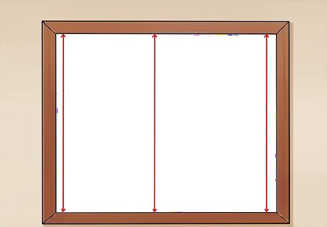 Measure inside height with three measurements and pick the largest. Measure inside height (top-to-bottom) from inside edge to inside edge of the opening. Measure the height at the left, middle, and right points of the window. Take the largest of the three measurements to ensure the hanging material reaches the bottom of the window. You may skip this step if you are hanging a short length of material at the top of the window and do not need it to reach all the way down. If you are hanging the short material partway up the window, you should measure to the height you intend to mount rather than the top of the window.