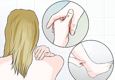 Give yourself a mini-massage. Make yourself comfortable and rub your hands over your neck and shoulders or calves and feet. You can also roll a tennis ball over your muscles with the palm of your hand. You can also apply pressure to pressure points like the skin between your thumb and forefinger. This one is especially handy if you get stressed out in a meeting or other place where you can’t give yourself a full-on massage.