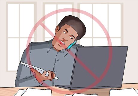 Focus on doing one thing at a time. If you’re feeling so frazzled by all the things you have to get done that you’re having trouble doing anything, try picking one simple task and focusing on that. Then pick one more task and focus on just doing that. Eventually, you’ll get some momentum going and you won’t feel so overwhelmed. You’ll just move on to the next thing. Avoid multitasking. Trying to do three, or six, or ten things at once isn’t efficient. You can’t do any of the tasks as well when you’re doing all of them at once, and you’ll end up making mistakes that will require you to do more work than you otherwise would have. Instead, focus on one thing at a time and do it as well as you can. When you feel comfortable with your work, move on to the next thing.