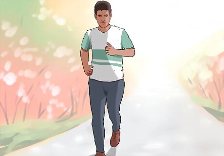 Exercise regularly. Exercise is a great stress reliever. It gives you a chance to exorcise your anxiety and also releases endorphins, which are hormones that make you feel happy. Regular exercise is best, but even a short walk or an office “dance break” when you’re feeling overwhelmed can beat your anxiety into submission.