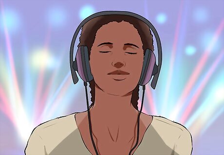 Listen to some relaxing music. Music is another mood-booster. Turning on some slow-rhythmed, up-beat tunes can make you feel happier, steady your heart rate, and release endorphins. Try making a playlist of songs that make you feel happy when you hear them. That way when you’re stressed, you can just start listening.
