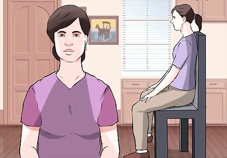 Settle into a straight posture. Sit or kneel comfortably on a chair or cushion. Your arms should hang at your sides and your hands should be loose or in your lap. The most important thing is to keep your spine tall and straight and to face forward with your chin tucked in slightly. You may find it helpful at first to meditate with your back against a wall or a straight-backed chair until you feel comfortable sitting up straight on your own.