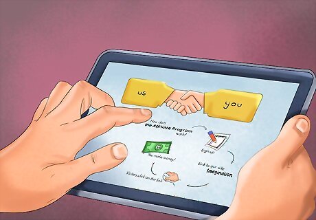 Sell other people's services through affiliate programs. As an affiliate marketer, you earn money by promoting another company’s products or services. Similar to sponsored content, you provide links to affiliates' services through content you have written. In this case, however, your advertising is more direct. You can rate products and provide links directly to them. You might provide product-placement videos. You could be paid by the sale, click, or sign-up. Choose products that will interest your readers and add value to your website’s content. Becoming an affiliate marketer takes a lot of time and effort. It is one of the most time-intensive methods of advertising. If you have strong content, you might ask the company to do cost-per-acquisition advertising. This gives you a commission based on what visitors purchase on the other company’s site.