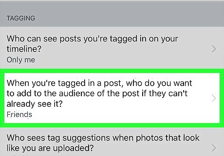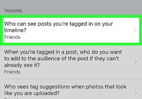 Scroll down and tap “Who can see posts you're tagged in on your timeline?”. It's the first option under the “TAGGING” header.