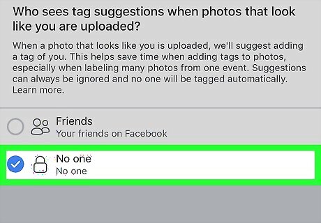 Select No one and tap the back button. Now nobody will be prompted to tag you in photos by Facebook's facial recognition feature.