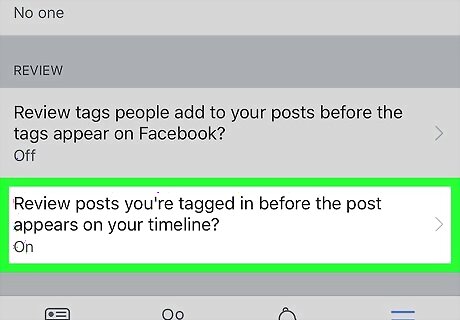 Scroll down and tap “Review posts you're tagged in before the post appears on your timeline?”. It's under the “REVIEW” header.