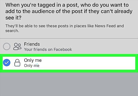 Select Only Me and then tap the back button. Now when someone tags you, the post will no longer appear in your timeline.