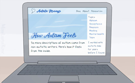 Share articles written by autistic people. Autistic writers can offer great insights into their differences, their needs, and how life feels to them. Here are some examples of blogs run partially or completely by autistic people: The Thinking Person's Guide to Autism Musings of an Aspie The Caffeinated Autistic Real Social Skills Autistic Hoya Emma's Hope Book We Are Like Your Child Parenting Autistic Children with Love and Acceptance (may be overwhelming to people new to the conversation)