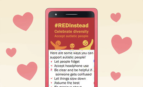 Consider spreading positive imagery. You can use red for #REDinstead, or put the neurodiversity symbol somewhere prominent. This can be encouraging for autistic people to see.