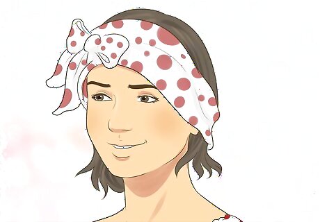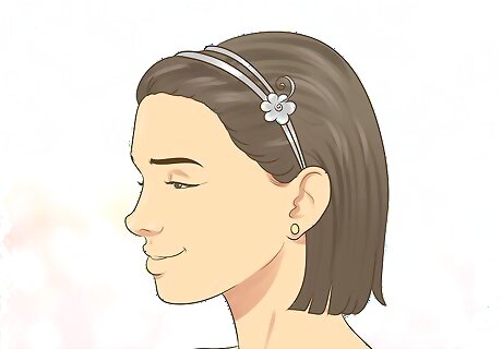 Try a headband. A headband can be a fun option for a more casual wedding. It keeps your hair back, as a veil, but is not as dressy. Headbands can also add a splash of color to your wedding ensemble. You can use a colorful headband to hold your hair out of your face at your wedding. You can also tie your hair back using a headband.