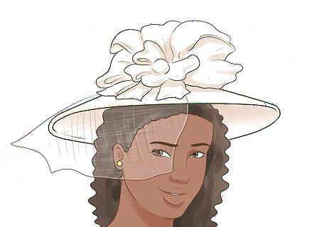 Wear a hat. If you don't mind veering fairly far off from the traditional, try a hat. Many bridal stores sell bridal hats, which can range from small and subtle to big and ornate. With some searching, it's easy to find a hat that fits your wedding's theme. If you're doing a very specific theme, a hat can be a great veil alternative. For example, wear a cowboy hat if you're doing a western-themed wedding. If you're doing a Southern-themed wedding, opt for a traditional wide-brimmed Southern bell hat.