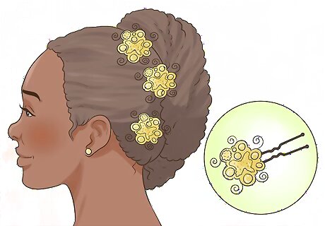 Use decorative hairpins. Decorative hairpins can keep your hair out of your face, much like a veil, but are fairly subtle. You can get hairpins in a variety of attractive shapes, such as butterflies and flowers. They are fairly simplistic, so they can be great if you're looking for something very minimal. You can place a few hair clips in your strategically, using them to clip some of your hair back. You can also let your hair flow and have clips embedded throughout your hair.