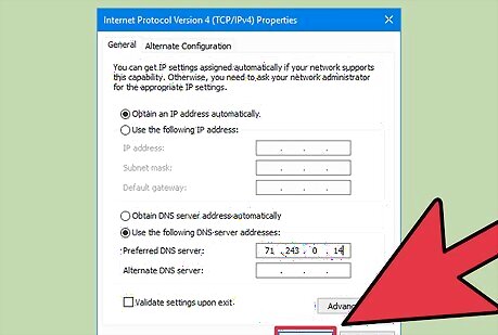 Change any DNS address ending in .12 to one ending in .14. For example, change 71.243.0.12 to 71.243.0.14.