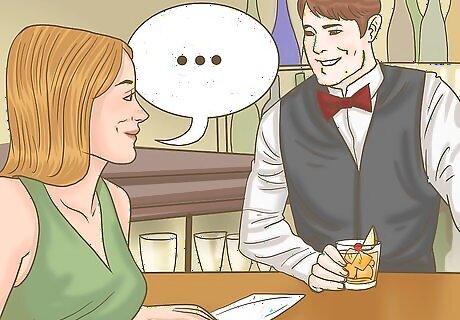 Practice your new ordering skills. There’s no better way to gain confidence in your whiskey knowledge than by going out and testing your ordering skills. Once you know how to order, you’ll feel more comfortable trying different brands and styles. Don’t be afraid to ask your bartender which whiskey they recommend. A standard format to follow when ordering is: Whiskey type, whiskey style, whiskey chaser. Example: “Auchentoshan Three Wood, neat, with a water back” Example: “Jameson on the rocks” Example: “Scotch on the rocks with a water back”