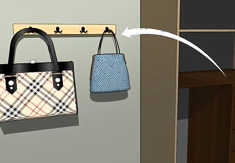 Hang accessories, scarves and handbags. With a little reorganizing, you may find that you have more room for shoes than you thought. Use hooks or hangers to efficiently store scarves and other items that may be cluttering up your closet.