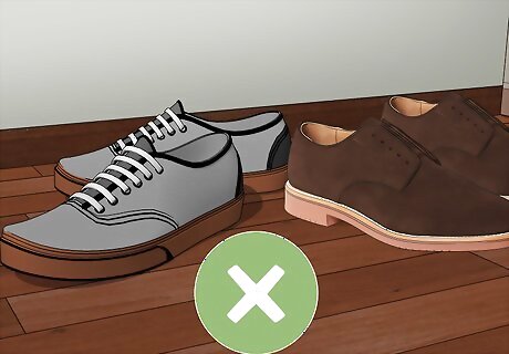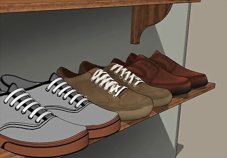 Avoid throwing your shoes on the floor. Lining shoes up on shelves makes them easier to find and reduces scuffs. Take a good look at your shoe collection and current closet space to see if you need to create some extra shelving.