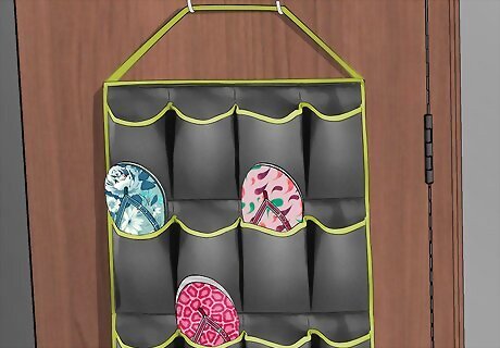 Organize shoes with an over-the-door pocket hanger. Flats, flip-flops and other lightweight, thinner shoes fit well into these hangers. Depending on the shoe you may be able to fit multiple pairs into one pocket.