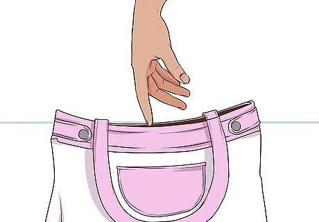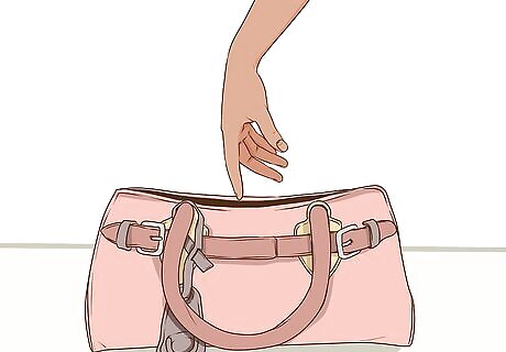 Take everything out of your purse. Be sure to go through all of the pockets, both interior and exterior, as well. Once you have everything out, you can use this chance to clean your purse as well. A quick and easy way to do this is to turn it upside down and shake it over a trashcan to empty out any debris.