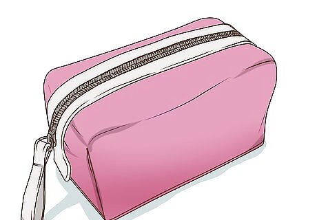 Store your makeup in a pouch, and be selective about what you bring. Keeping all of your makeup together will not only make things easier to find, but it will also help keep the inside of your purse clean. You also want to carry the makeup you use the most often with you. This means that, instead of carrying five different eyeshadow shades, you only pack one pallet, and leave the rest at home. The less makeup you carry, the less bulk you will have. Another option is to omit packing your makeup, and doing it at home. Pack items for touch-up only, such as lipstick, lip gloss, and powder.