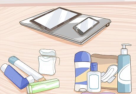 Go through your piles and pull out the items that you seldom use. Take a careful look at your items. Do you really use that tablet or eReader each and every time you leave the house? Some seldom-used items are important in case of emergencies (such as feminine care products or medication) but other items (such as electronic or entertainment items) are not absolutely necessary. This does not mean that you can never bring your electronic or entertainment items with you. Pack them in your purse only when you know that you will need them; otherwise, leave them at home. Be selective about your makeup. Limit yourself to just one lipstick shade and one eye shadow palette. You can change them out weekly; the less you pack, the better.