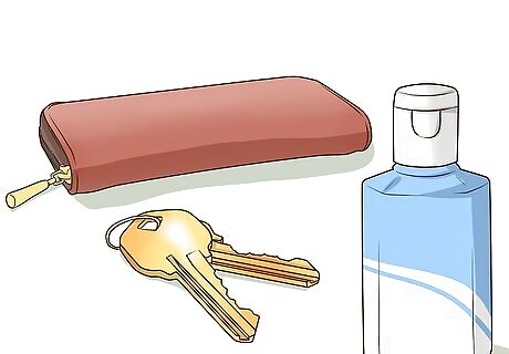 Pack the items you use the most first. This includes things like your wallet, sunglasses, keys, hand sanitizer, and lip balm. If you have any pockets in your purse, consider putting the smaller items (such as lip balm) into them. This will not only reduce clutter, but also make it easier to reach in and grab what you need; you won't have to rustle through your purse for five minutes to find that tiny tube of lip balm.