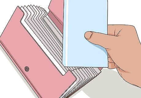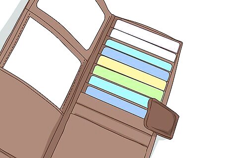 Store gift cards, loyalty cards, and credit cards in your wallet or a card holder. Many wallets even have special slots for these types of cards. If you want to get super-organized, sort them alphabetically. See if your loyalty cards are available in app form. This can save you lots of space because everything will be stored on your phone. Store the cards you use the most in your wallet, and the cards you use less often in a separate pouch.