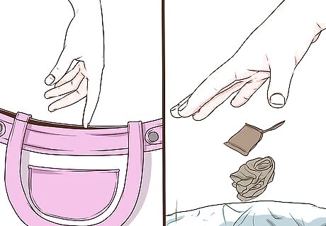 Throw out any trash or items that don't belong. If it's been a while since you last cleaned out your purse, you might have some items that don't belong, such as: candy wrappers, a pair of extra socks you brought because it was raining, expired coupons, or receipts for items you no longer have. Throw away the items that need to be thrown away (such as candy wrappers) and put away items that don't belong (such as that change of socks).