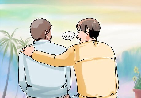 Find a kindred spirit. If there is someone who is also grieving, seek out their company. It can help to be with someone who empathizes with your emotional pain. Being with a close friend or family member can uplift your spirits and help you feel less alone in your grief. Reach out to them and say, "I have been feeling horrible these past few days. Can we hang out?" The two of you may bond over the fact that everyone seems so happy or that the world is moving on despite your loss.