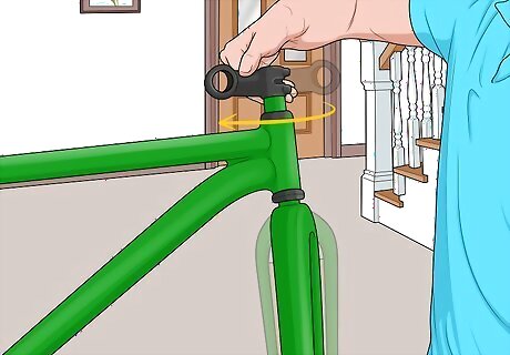 Remove the bike's handlebar, pedals, seat post and front wheel. Most of these parts can be removed by hand, although you may need to employ a small wrench in order to remove the pedals. Shift the bicycle chain onto the small chain ring, and the largest rear cog, before attempting to remove the pedals. Turn the right pedal counter-clockwise, and the left pedal clockwise, to unthread. Loosen and remove the seat post and seat as a unit. Once removed, retighten the seat post bolt so the seat does not fall out. Set all loose parts safely aside.