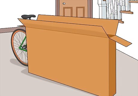 Acquire a bicycle-specific box from your local bike shop. If the shop is not able to provide you with a free used box, you can usually purchase a brand new box for a small fee. Remove, or cover, any existing shipping labels on pre-used boxes.