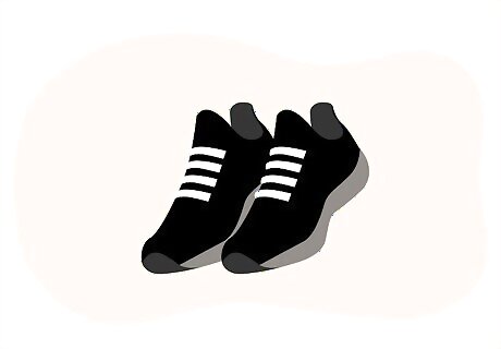 Bring gym shoes. Good shoes are essential for working out. Most gym goers can wear trainers or running shoes. If you are an advanced weight lifter, you may want lifting shoes instead. Regardless of the shoes you wear, make sure you pack them. Trying to run on the treadmill in your work heels or loafers would probably not work very well. Don't forget some socks. Working out without socks isn't great for your feet or your work out footwear. Make sure you always have a pair of socks in your bag, even if you have worn a pair to the gym. You never know when your socks are going to slide down in your shoes, get wet, or have something else happen to them. Socks are essential items in your gym bag. Make sure to pack flip-flops. Flip-flops are a must have if you are showering at the gym after your workout. You should never place your bare feet on the shower floor; instead, wear flip-flops to protect your feet from bacteria and fungi.
