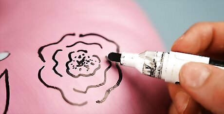 Trace your design onto the pumpkin. With a permanent marker and a stencil, or a pattern you have made yourself, lightly trace your design onto your pumpkin. Don't overthink it. You'll be painting over what you've traced, so it doesn't have to look perfect. If you're feeling uncertain, you can start drawing the design with a pencil first, and then go over it with the permanent marker. To keep the pattern or stencil steady, it might help to tape it in place. To create straight lines, stripes, or shapes, tape pieces of masking tape to your pumpkin in the desired pattern. Optional: Use transfer paper (graphite paper) to trace your design. Transfer paper is a popular craft product used to transfer a design or pattern onto any surface. Here's how to use the transfer paper: Print out or draw your design on a piece of paper. Tape a piece of transfer paper to the pumpkin. Tape the paper with your design on top of the transfer paper. Use a pencil to trace the outlines of the design. When you're finished, remove the two layers of paper, and you'll find the outline of your design traced onto the pumpkin.