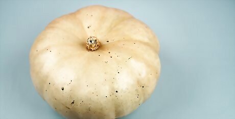 Choose your pumpkin. A good pumpkin for painting has a smooth, even surface with no bruises, scratches, or blemishes. Pumpkins with light or very light or shallow ribbing will have the smoothest surfaces. Avoid pumpkins with too many lumps and bumps, or they will be difficult to paint. Look out for any cuts or wormholes that will cause problems, and make sure that the pumpkin is flat enough to sit upright. Watch out for any soft spots in the pumpkin because that may be a sign of rot. You want your pumpkin to be fresh and to last as long as possible. Almost any variety of pumpkin can be painted, but the following are especially good: Baby Pam, Sugar Pie, Neon, Lumina, or Cotton Candy.