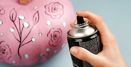 Use a sealant to set your design. When your paint is completely dry, spray a light layer of craft sealant all over the painted areas of your pumpkin.
