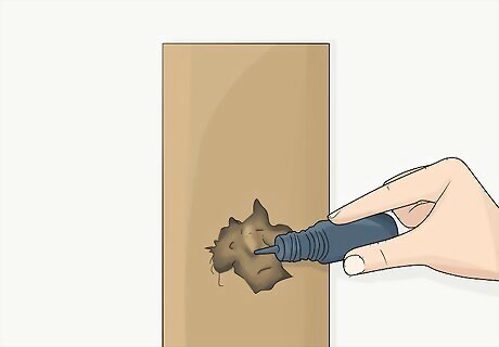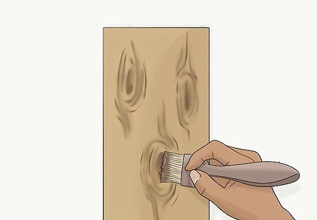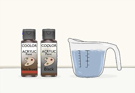 Mix dark brown or black paint with enough water to make it slightly inky. Start by pouring a small amount of paint onto a paper plate, scrap piece of board, or similar disposable surface. Then, add up to half as much water and mix the two substances using a wooden stick or the tip of a brush. Introduce your water little by little until the paint is nice and wet. It should have a consistency similar to melted ice cream. Water-based acrylic, latex, and multi-surface paints will all show up nicely on a variety of wood surfaces. Just be sure to choose a paint that's easy to water down in order to get the right texture and depth of color. Lightly-diluted water-based wood stains will also capture the rich, dark tone of natural wood knots quite authentically.