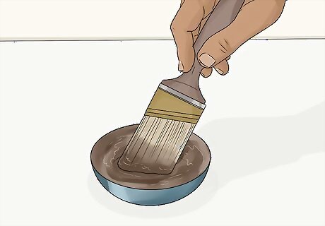 Load a ⁄4 in (1.9 cm) flat brush with paint. Dip the tip of your brush into the diluted paint and swish it around in all different directions to thoroughly saturate the bristles. You’ll get the best results using a brush that’s brimming with color. A flat brush will offer you more control over the shape of your knots than a round or chisel brush. You can easily achieve the look you’re going for with either a soft- or stiff-bristled brush. Go with whichever tool is more comfortable for you to work with.