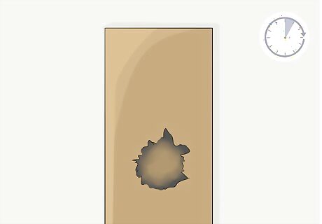 Paint on circles, half circles, and crescent shapes that mimic the look of knots. Glide the corner of your brush over the surface of the wood with fluid circular motions. Aim to make your knots round, but keep their edges slightly irregular. You can even leave some edges open or cut them short on one side so they don’t all look alike. If you’re painting more than one knot, vary their shapes a bit to make them more lifelike. Drying times will vary depending on the type of paint you're using. As a general rule, let your freshly-painted knots dry for 30 minutes to an hour prior to making any further adjustments.Warning: Remember—less is more. It’s generally best to limit yourself to no more than 2-3 knots for every 2–3 square feet (0.19–0.28 m) of space. If you overdo it, it can make your piece look gaudy and fake.