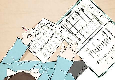 Separate bills that are clearly individual. As you look through your bills, you'll likely notice some that clearly belong to one of you. Those bills provide a good place to start when trying to separate your finances. If you can agree on the division of bills that only benefit one of you, you're well on your way to an agreement. For example, if your spouse has a music streaming subscription in their name that you never use, that would be a separate bill. You might also make similar agreements regarding consumer credit cards. For example, if you have a store credit card for a store where your spouse never shops, you could agree to be responsible for that bill. With secured credit, such as car loans, normally the spouse who has the property pays the bill — but not always. Make sure you and your spouse agree about who's responsible for these debts. For example, if you're making payments on both of the cars you own, you would normally be responsible for the payment for the car you drive most often and your spouse would be responsible for the payment for the car they drive most often.