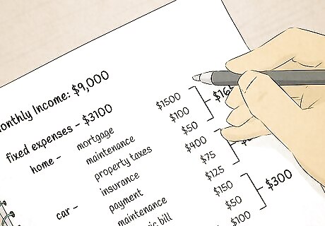 Make a list of all your bills and expenses. Sit down with your spouse, if possible, and make a list of all the bills both of you pay in a regular month. Include any other expenses so you can create new, separate budgets for each of you to work from while you're separated. For example, your list of monthly expenses will likely include your rent or mortgage payment, car payment, utilities, insurance premiums, mobile phone bills, groceries, and credit card payments. If you have credit cards, list the minimum payment. Evaluate the balance and see what you can do to pay off any of that debt. Pull bank statements for the past couple of months to make sure you've included everything. Subscriptions and other small expenses sometimes slip through the cracks, but you need to account for everything. Don't force the issue if the situation is too emotional. If you and your spouse are unable to work together on this, make a list on your own and get them a copy of it. You might also consider working through a lawyer or mediator if communications are strained or volatile.