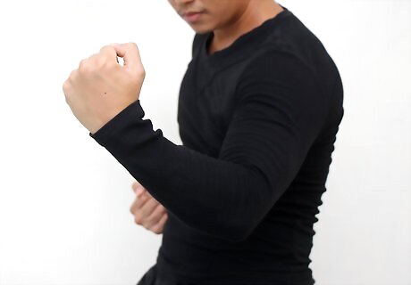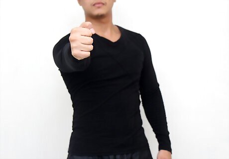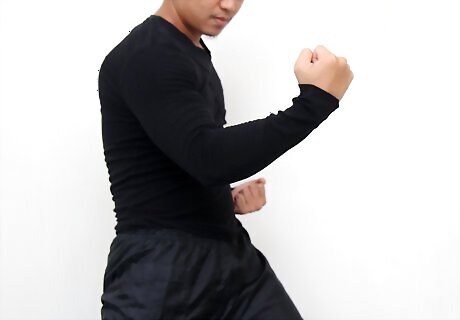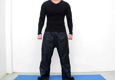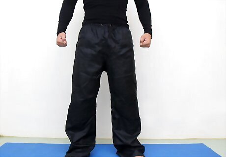 Set up a basic stance. Stand up in basic stance which involves having your feet spread out and your hands in fists next to each side of your waist. It is important to make sure your thumb is on top of your fist at all times.