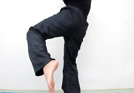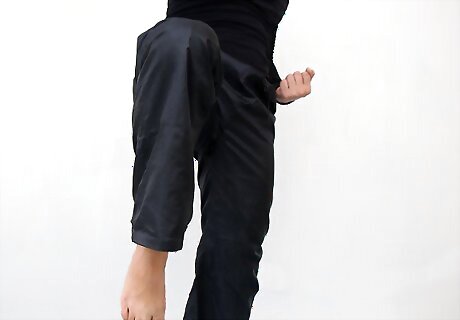 Enable yourself to do the eighth move Hachi. Pick your left (or right) leg up and point it towards the right (or left). When picking your leg up remember to have your toes pointed downward. Strike your leg as if you were hitting another person in the leg area with your knee.
