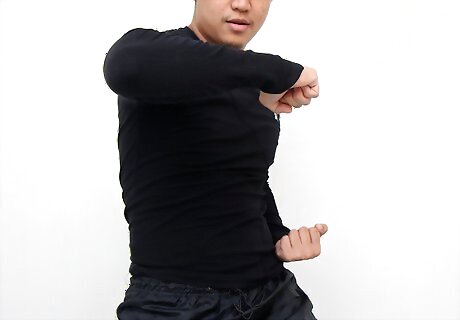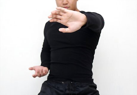 Perform Go, the fifth move. Bring your right (or left) arm up and point it on its side. Swing it across in front of you. Imagine you are striking someone in the chest area with the blade of your arm.