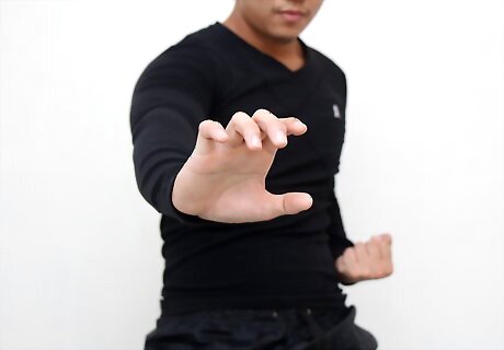 Try San, for the third move. Point your right (or left) fist up to the ceiling. Throw an uppercut type punch upward as if you were hitting a person in the stomach area with your first two knuckles.