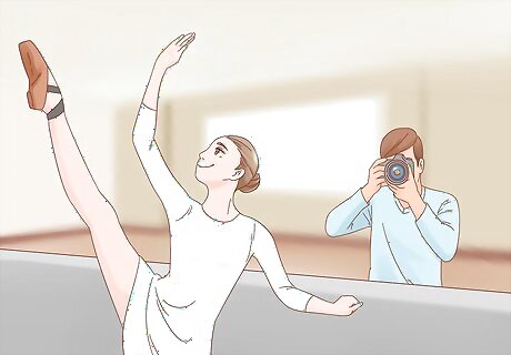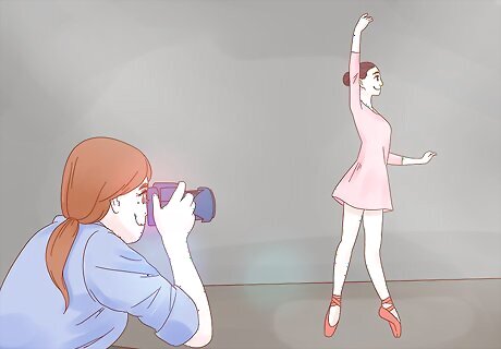 Use natural lighting in the photo shoot. While you can open up the aperture or use flash if the lighting isn't ideal, taking photos in natural sunlight will make your photos come out focused and dynamic. Set up additional lighting if needed, and use reflectors to bounce the light and help eliminate shadows. Ask the dancer if they wouldn't mind doing their photo shoot outdoors so that you can take advantage of the natural lighting.